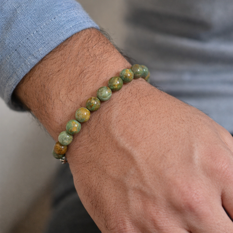 Sterling Silver Men's Rhyolite Bead Bracelet